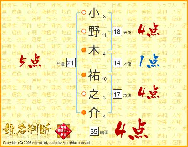 小野木祐之介さんの総運は35画の4点!