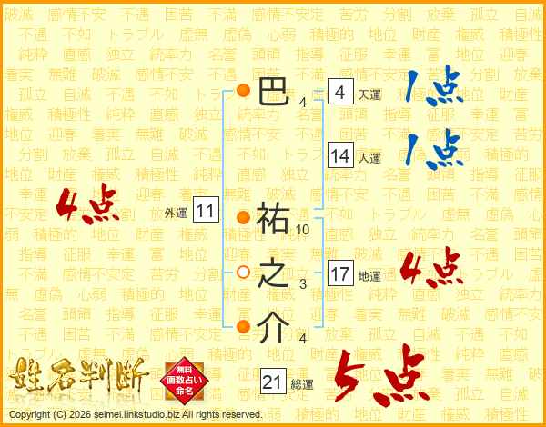 巴祐之介さんの総運は21画の5点!