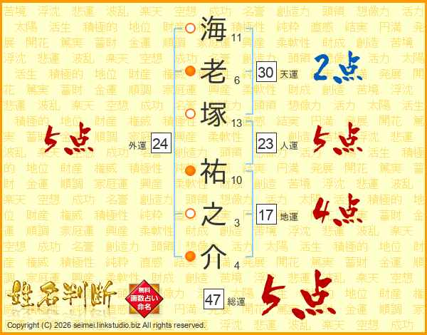 海老塚祐之介さんの総運は47画の5点!