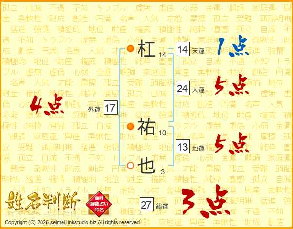 杠祐也さんの天運は14画の1点!