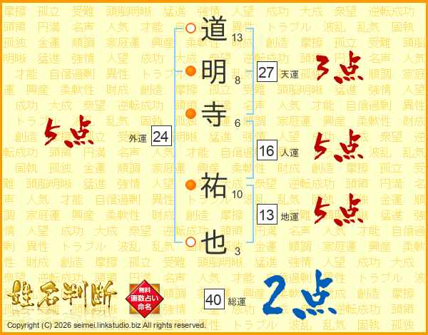 道明寺祐也さんの総運は40画の2点!