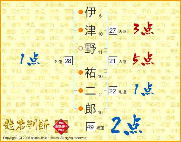 伊津野祐二郎さんの総運は49画の2点!