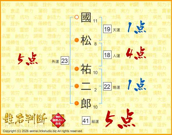 國(11画)松(8画) 祐(10画)二(2画)郎(10画)