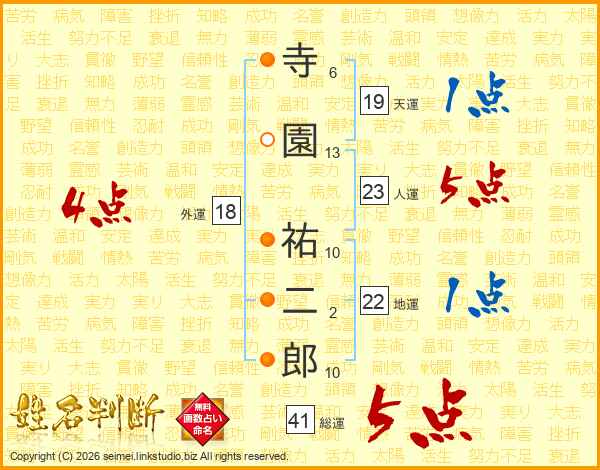 寺(6画)園(13画) 祐(10画)二(2画)郎(10画)