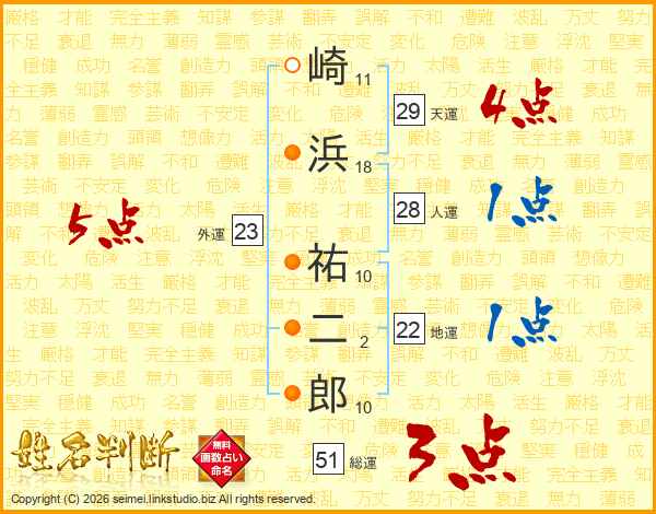 崎浜祐二郎さんの総運は51画の3点!