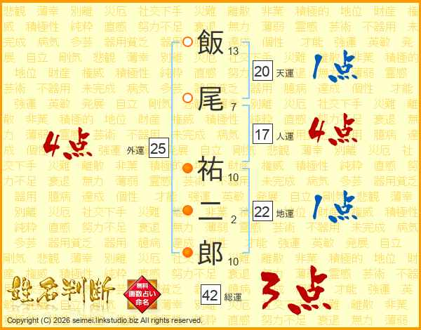 飯(13画)尾(7画) 祐(10画)二(2画)郎(10画)