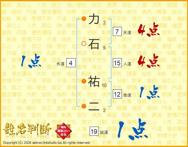力石祐二さんの総運は19画の1点!