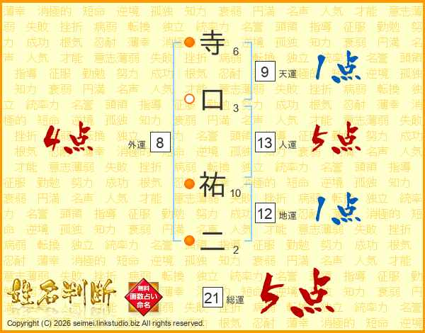 寺口祐二さんの総運は21画の5点!