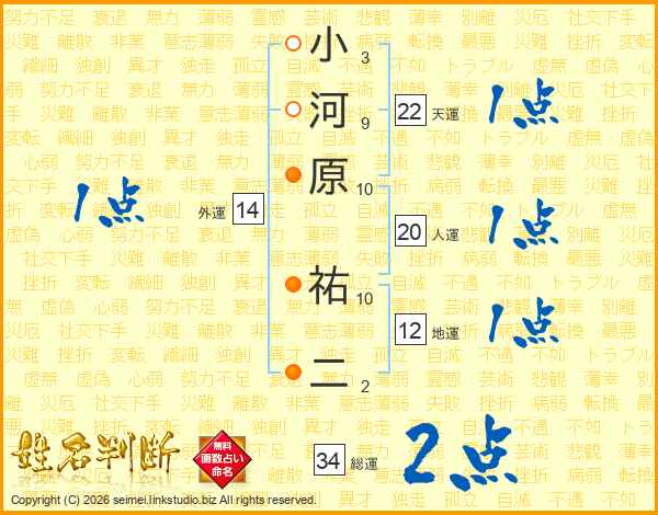 小(3画)河(9画)原(10画) 祐(10画)二(2画)