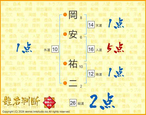 岡安祐二さんの総運は26画の2点!
