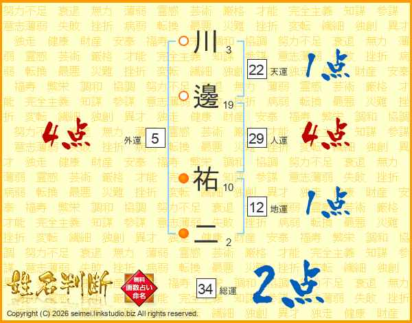 川邊祐二さんの人運は29画の4点!