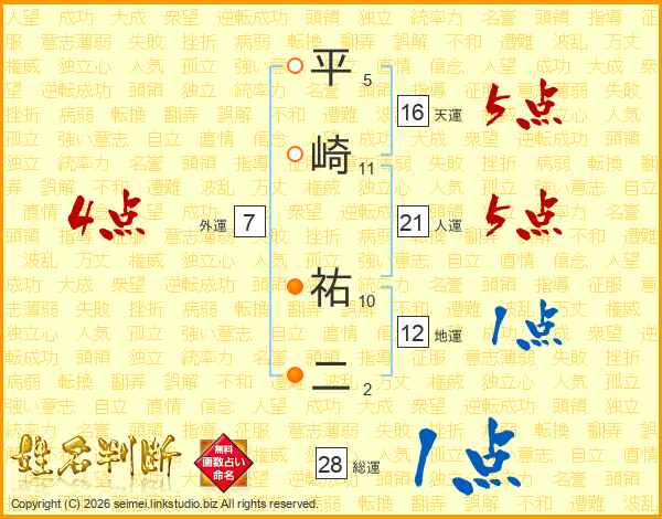 平崎祐二さんの人運は21画の5点!