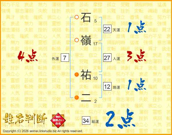 石嶺祐二さんの総運は34画の2点!