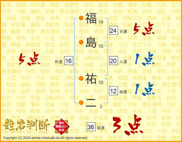 福島祐二さんの総運は36画の3点!