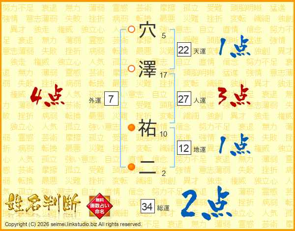 穴(5画)澤(17画) 祐(10画)二(2画)