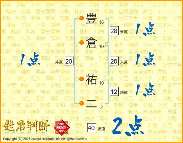 豊(18画)倉(10画) 祐(10画)二(2画)