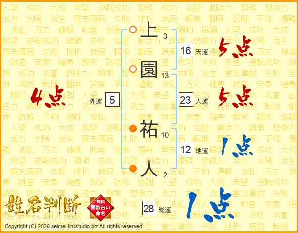 上園祐人さんの総運は28画の1点!