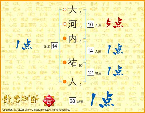 大河内祐人さんの総運は28画の1点!