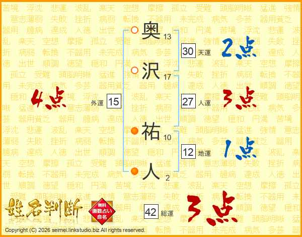 奥沢祐人さんの総運は42画の3点!