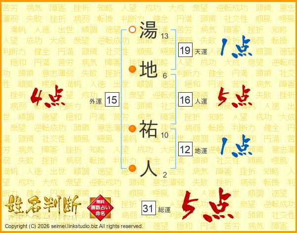 湯地祐人さんの総運は31画の5点!
