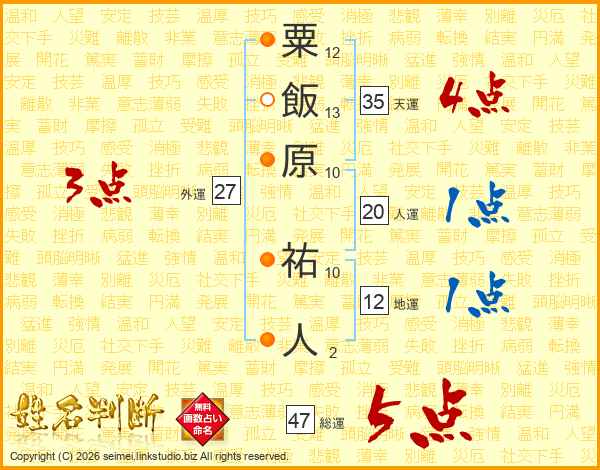 粟飯原祐人さんの総運は47画の5点!