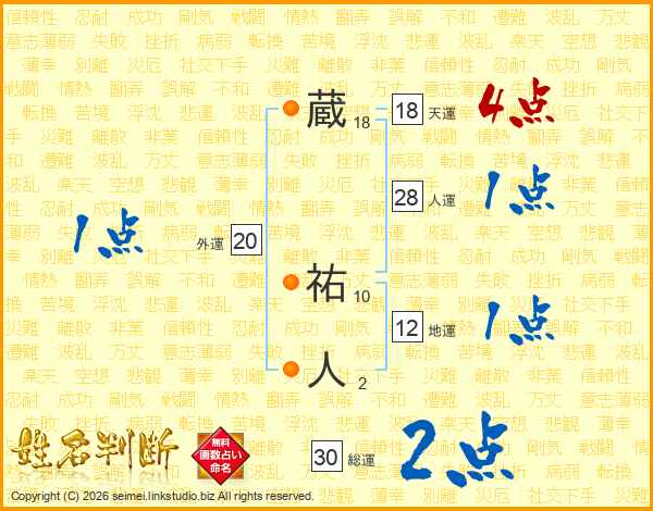 蔵祐人さんの人運は28画の1点!