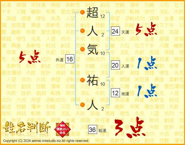 超(12画)人(2画)気(10画) 祐(10画)人(2画)