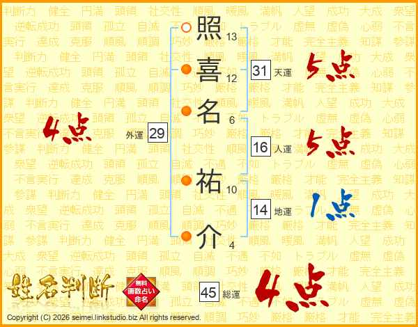 照喜名祐介さんの総運は45画の4点!