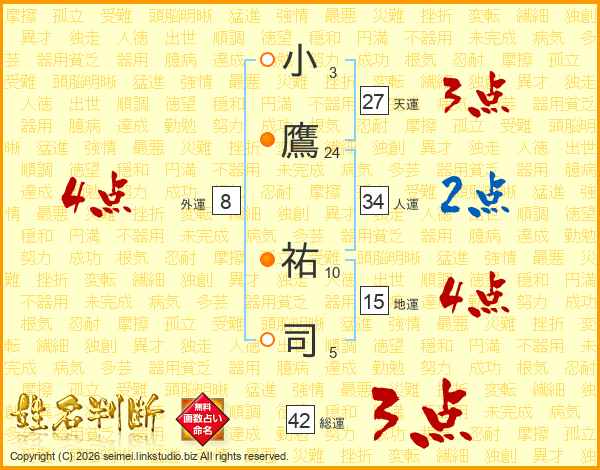 小(3画)鷹(24画) 祐(10画)司(5画)