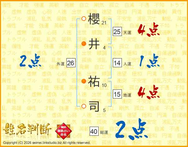 櫻井祐司さんの総運は40画の2点!