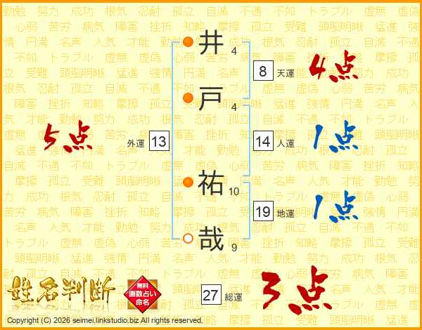 井(4画)戸(4画) 祐(10画)哉(9画)