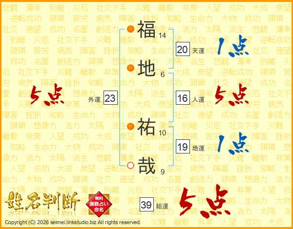 福地祐哉さんの総運は39画の5点!