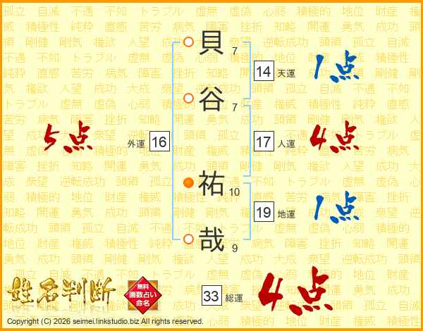 貝谷祐哉さんの総運は33画の4点!