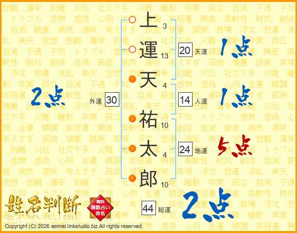 上運天祐太郎さんの総運は44画の2点!