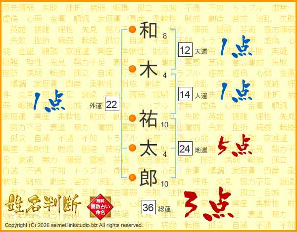 和木祐太郎さんの総運は36画の3点!