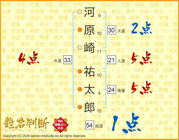河(9画)原(10画)崎(11画) 祐(10画)太(4画)郎(10画)