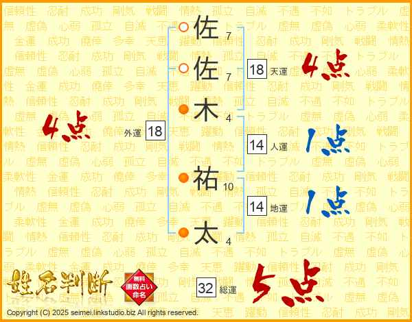 佐佐木祐太さんの総運は32画の5点!