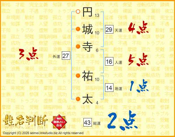 円城寺祐太さんの総運は43画の2点!