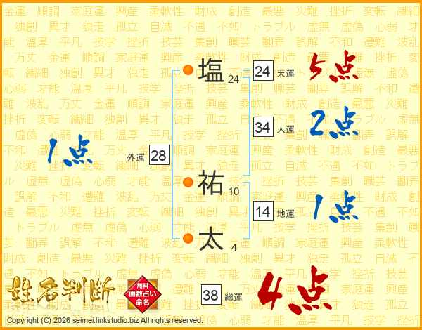 塩(24画) 祐(10画)太(4画)