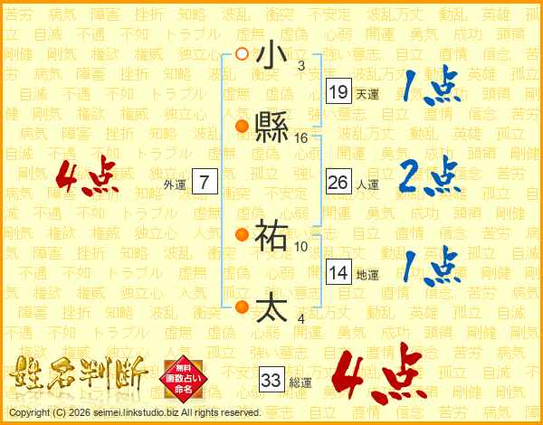 小縣祐太さんの総運は33画の4点!