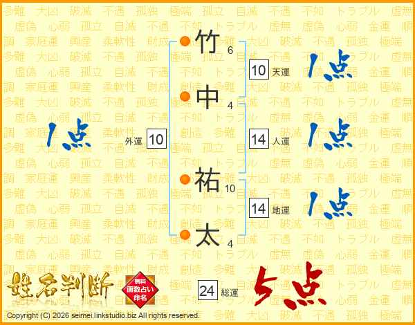 竹中祐太さんの総運は24画の5点!
