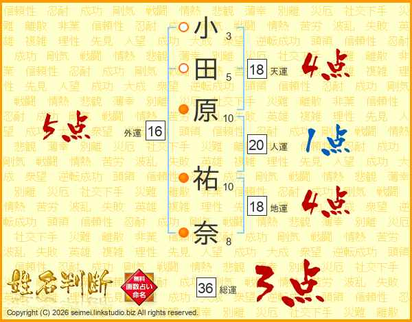 小田原祐奈さんの総運は36画の3点!