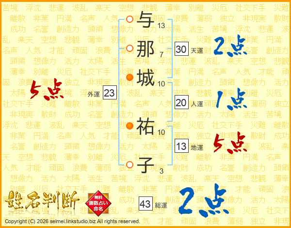 与那城祐子さんの天運は30画の2点!