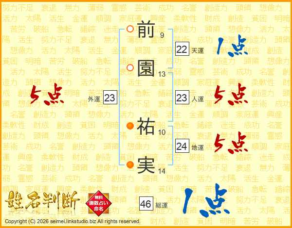 前園祐実さんの総運は46画の1点!