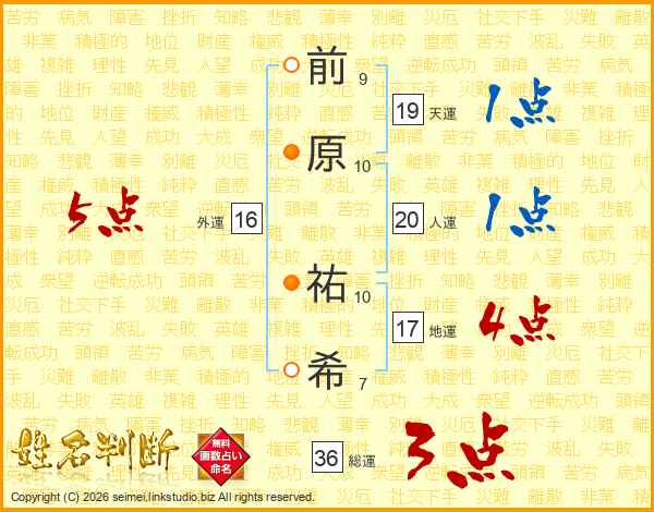 前原祐希さんの総運は36画の3点!