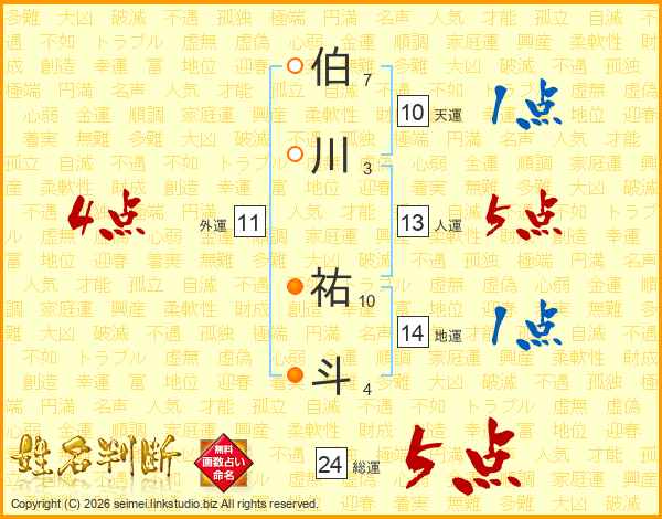 伯川祐斗さんの人運は13画の5点!