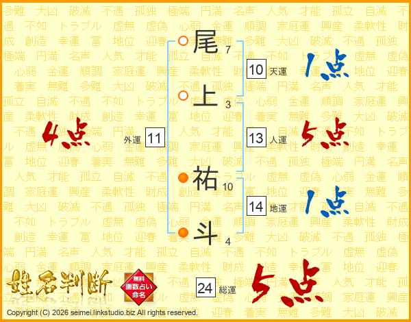尾(7画)上(3画) 祐(10画)斗(4画)