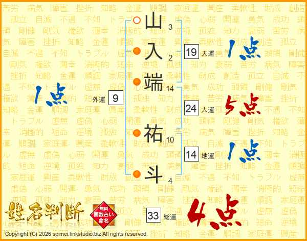 山(3画)入(2画)端(14画) 祐(10画)斗(4画)