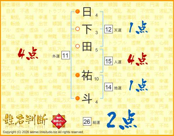 日下田祐斗さんの総運は26画の2点!