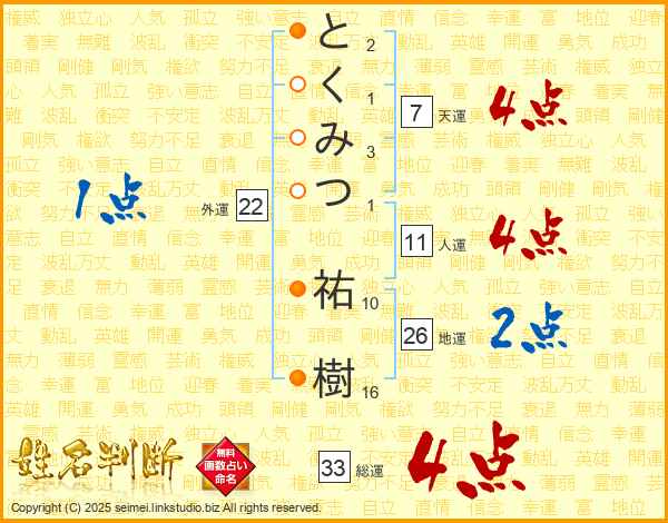と(2画)く(1画)み(3画)つ(1画) 祐(10画)樹(16画)